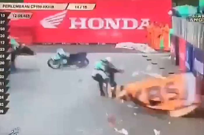 Setelah sebelumnya rekan satu tim yang ada di depannya menabrak pagar tersebut.