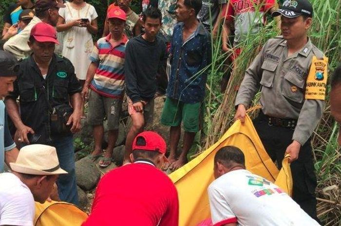 Sekeluarga, mereka menggunakan motor Honda Astrea Grand warna hitam AG 3325 YH tiba di lokasi wisata sekitar pukul 14.00 WIB.