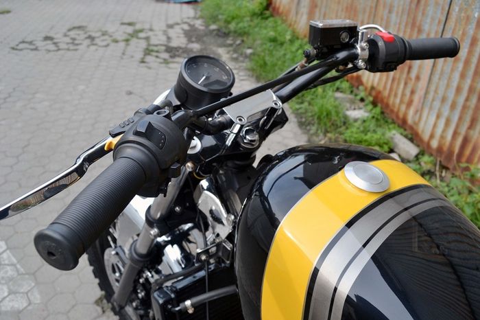Secara tampilan, agar terlihat macho dan nakal, posisi tangki dibuat agak naik. “Untuk itu, pangkon di tangki bagian bawah saja yang diubah,” kata Jon.