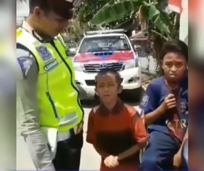 Berikut video saat bocah ini ketahuan naik motor yang diunggah di akun @raja_posting;