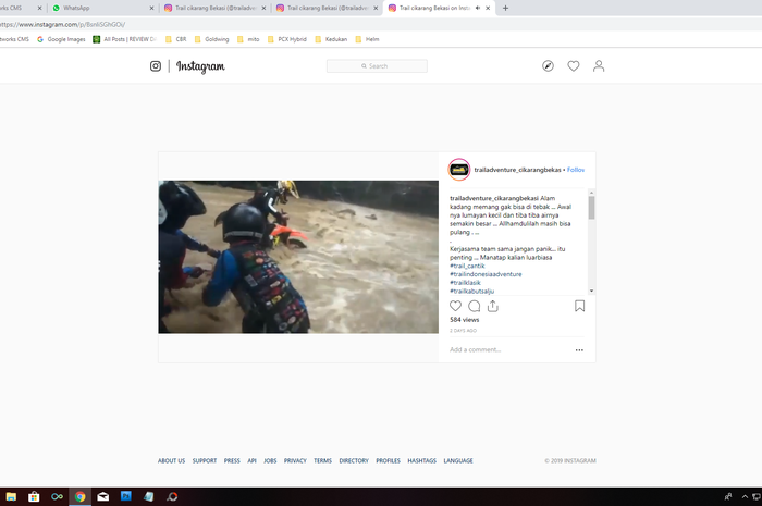 Awalnya, rombongan trail dengan akun Instagram @trailadventure_cikarangbekasi mau melewati sungai.