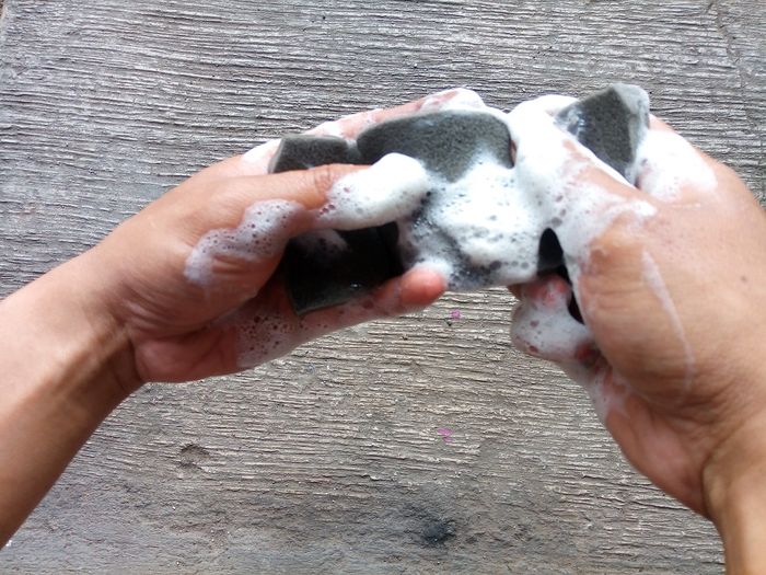 Nggak mau terulang kembali, kini Ucuy membersihkannya menggunakan cairan pencuci piring.