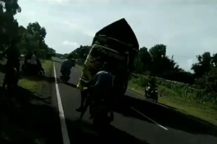 Kejadian ini diawali ketika beberapa orang sedang menunggu truk untuk malakukan aksi olengnya.