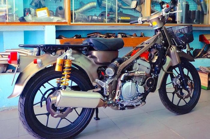 Soalnya, modifikasi ini dilakukan pada motor bebek sejenis Super Cub yang kemudian dijejali sama mesin Kawasaki KLX250.