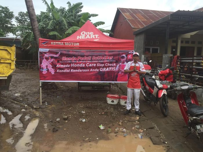 Dibangun 26 posko Honda Peduli menyediakan pengecekan kondisi kendaraan secara gratis buat pemilik motor Honda yang terkena musibah banjir.