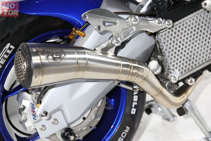 Diperkuat dengan sokbreker depan model upside down dan sok belakang yang diubah menjadi monoshock.