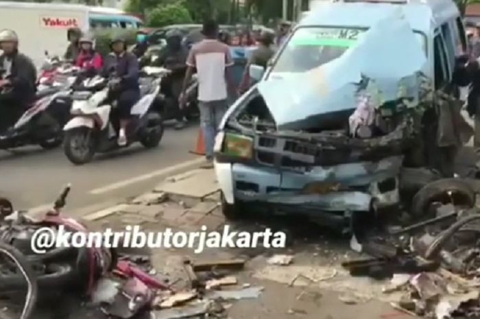 MOTOR Plus-online.com - Tragis, beberapa pengendara motor terluka akibat ditabrak oleh angkot M27 jurusan Pulogadung - Kampung Melayu.