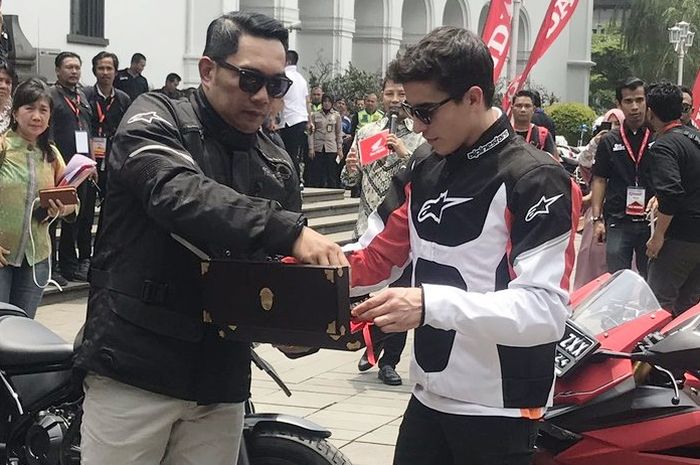 Untuk menyambut kedatangan Marquez, Gubernur Jawa Barat Ridwan Kamil menyempatkan ngobrol dengan juara dunia MotoGP 2018 ini.