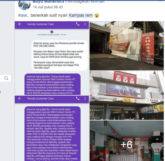 Klaimnya, dia sudah mencari ke berbagai dealer AHASS, tapi tidak ada satupun stok yang tersedia.