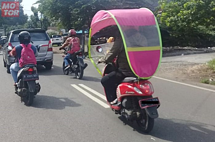 Yaitu motor dipasang kanopi dan payung, yang melindungi pengendara, sampai pemboncengnya.