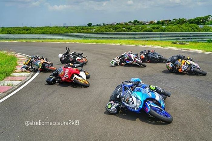 Berbeda dengan deretan penggemar motor sport di Surabaya, yang malah melakukan aksi lebih gila dari kneedown.