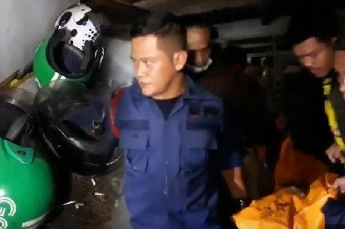 Dalam Video detik-detik evakuasi driver ojek online tampak jenazah korban yang sudah terbungkus kantong kuning dibawa petugas dari dalam kamar mandi rumah orang tuanya di Jalan Mahoni Gang I, Blok E, RT 01/RW 01, Lagoa.