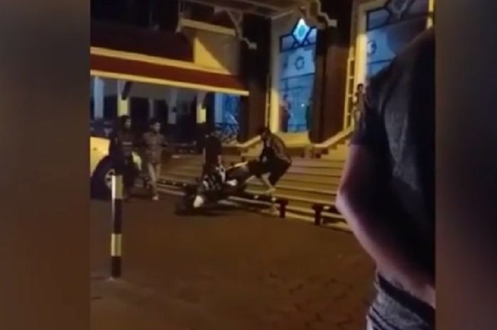 Dari informasi yang diunggah akun Instagram @agoez_bandz4, seorang pemotor marah karena ditegur marbot (pengurus Masjid).