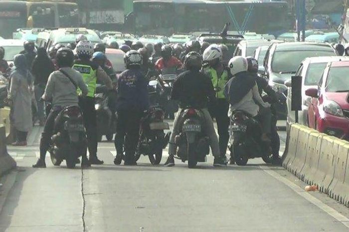 MOTOR Plus-online.com - Terobos jalur busway oleh pengendara, motor dan mobil, merupakan pelanggaran lalu lintas.
