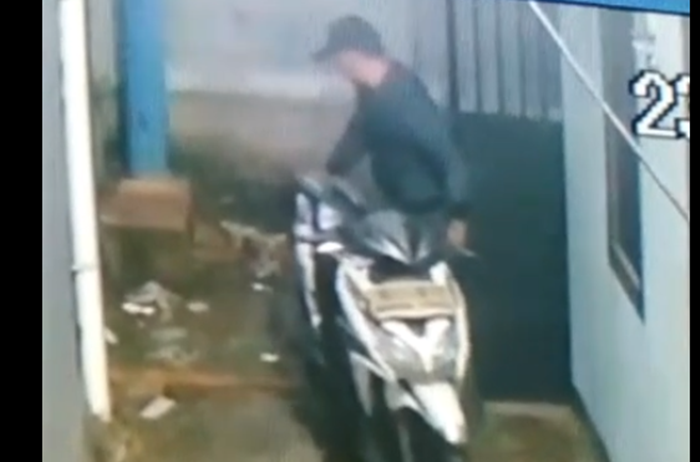 Waktunya sangat cepat, dan motor BeAT berwarna merah-putih ini sudah raib, dicolong dua orang ini.