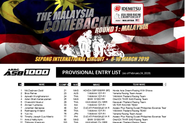 Baru ada bocoran entri list dari pembalap yang mengikuti kelas Asia Super Bike (ASB) 1000.