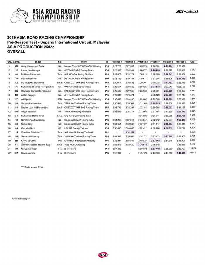 Berikut ini, hasil tes pramusim ARRC 2019 :