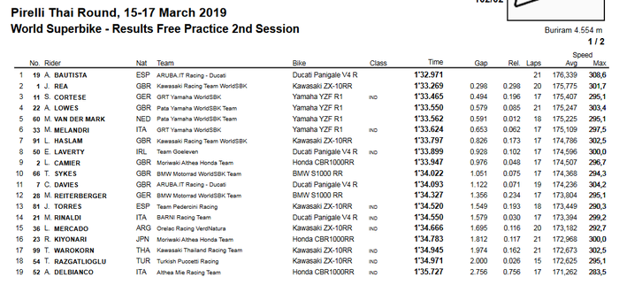 Sementara itu, Juara dunia bertahan Jonathan Rea berada di belakangnya, lebih lambat 0,298 detik.