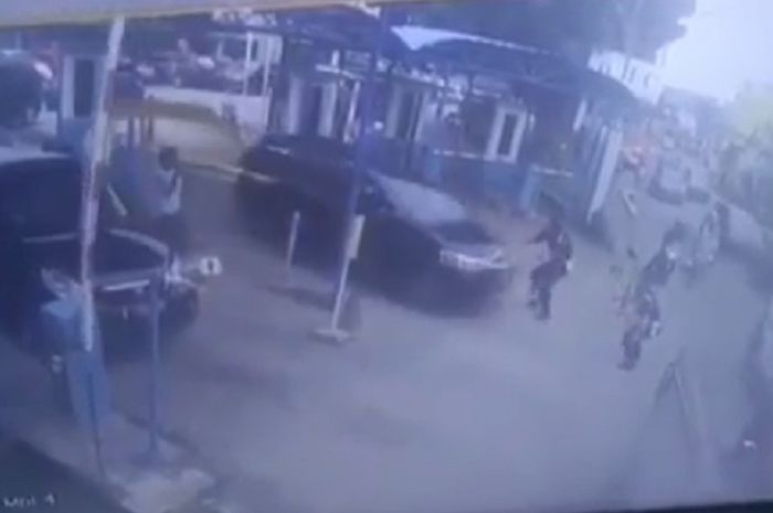 Tapi pelaku yang panik langsung tancap gas menerobos palang parkir.