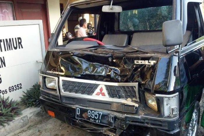 Terjadi kecelakaan yang melibatkan satu unit motor dan mobil pikap.