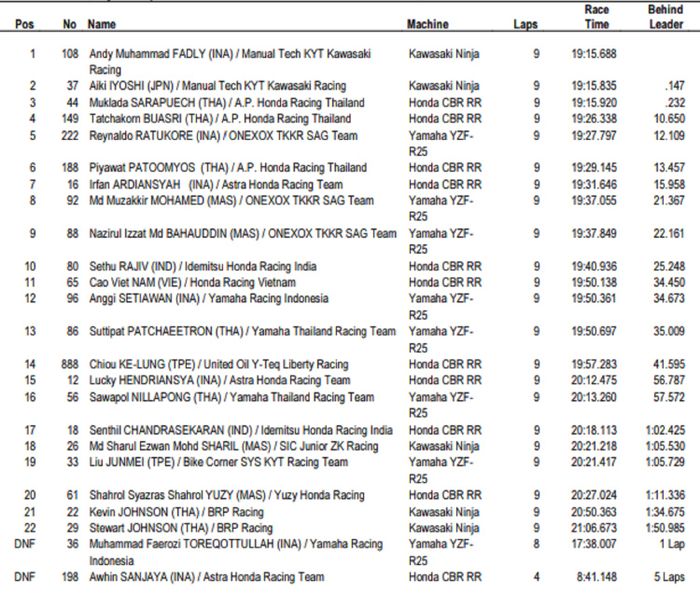 Yap, Aiki Iyoshi mampu finish di belakang A.M Fadly dengan selisih 0,147 detik.