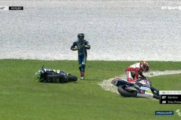 Dimas Ekky Pratama, mengalami kecelakaan buntut dari high side yang dialami oleh pembalap asal Australia Remy Gardner.