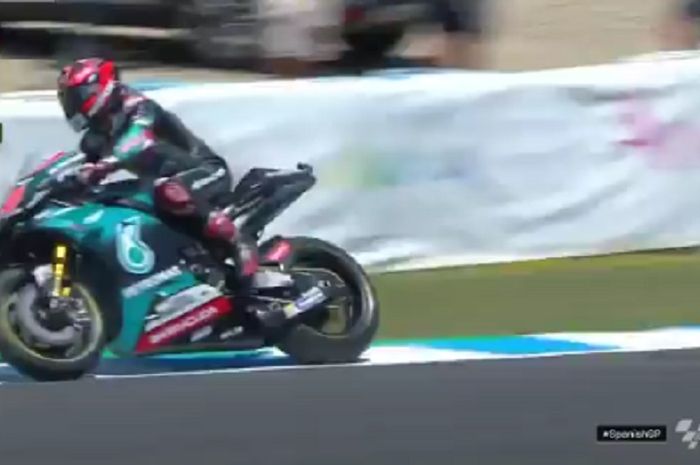 Fabio Quartararo yang juga murid Valentino Rossi itu mendadak motornya enggak bisa digas lagi saat di lap ke-12.