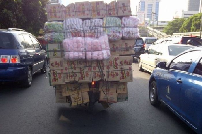 MOTOR Plus-online.com - Di jalan raya pasti pernah melintas pemotor yang mengangkut barang melebihi kapasitas.