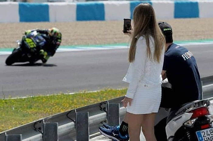 Mirip mata-mata, pembalap ini merekam aksi Rossi di Jerez bersama seorang cewek seksi, di atas motor matic Honda.