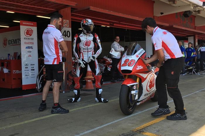 Nah, di sesi tes dua hari di sirkuit Catalunya (Spanyol), Dimas Ekky melakukan tes untuk mendapatkan setting motor terbaik.