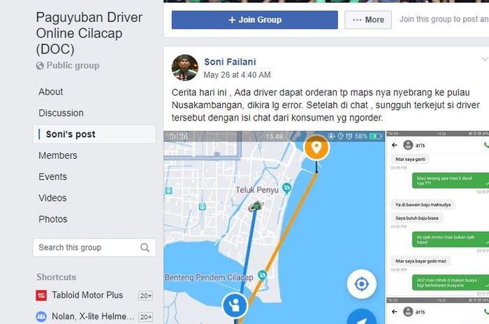 Salah satunya seperti yang diungkapkan oleh Soni Failani di grup Facebook Paguyuban Driver Online Cilacap (DOC).
