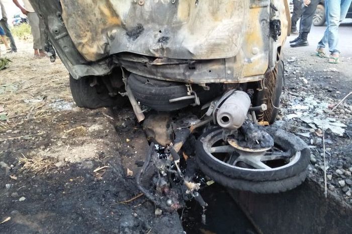 Setelah itu mobil langsung masuk ke arah berlawanan, dan bagian depan Avanza itu memutar ke arah Cirebon.