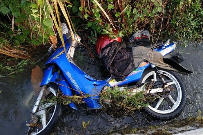 Pasalnya, warga menemukan satu unit motor Suzuki Shogun warna biru teronggok di parit.