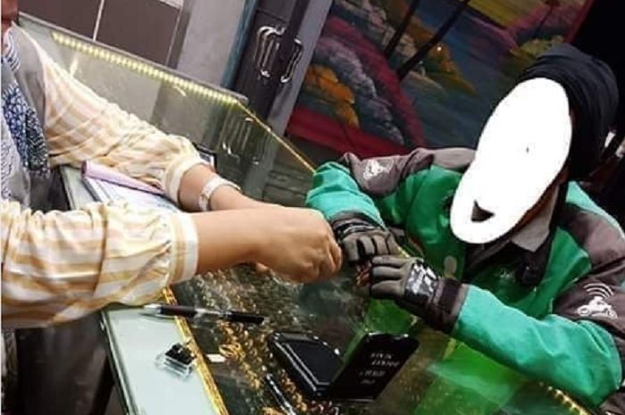 Raut wajah si driver ojol nampak sumringah karena masih ada toko mas yang buka pada pukul 19.30 WIB.