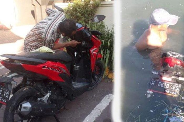 Kali ini sebuah motor Honda Vario bernopol W 6620 VS ditemukan teronggok begitu saja di dalam sungai (17/6/2019).