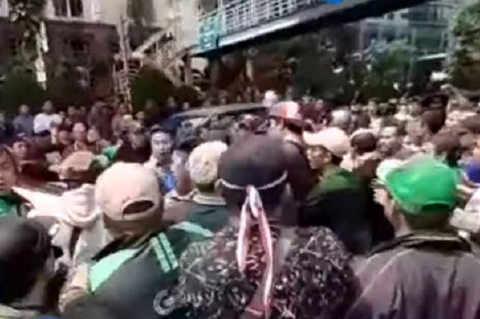 MOTOR Plus-online.com - Aksi unjuk rasa oleh ratusan driver ojol mitra GoRide dan GoCar di depan kantor GoJek.