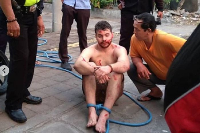 Salah satu korbannya adalah pemotor yang terjatuh akibat ditabrak oleh sang bule yang mengamuk.