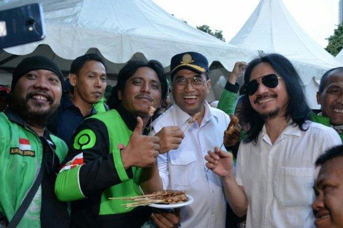 MOTOR Plus-online.com - Menteri Perhubungan (Menhub) Budi Karya Sumadi bertemu dengan sekitar 500 orang pengemudi ojek online Gojek dan Grab dalam kegiatan "Nyate Bareng Menhub".