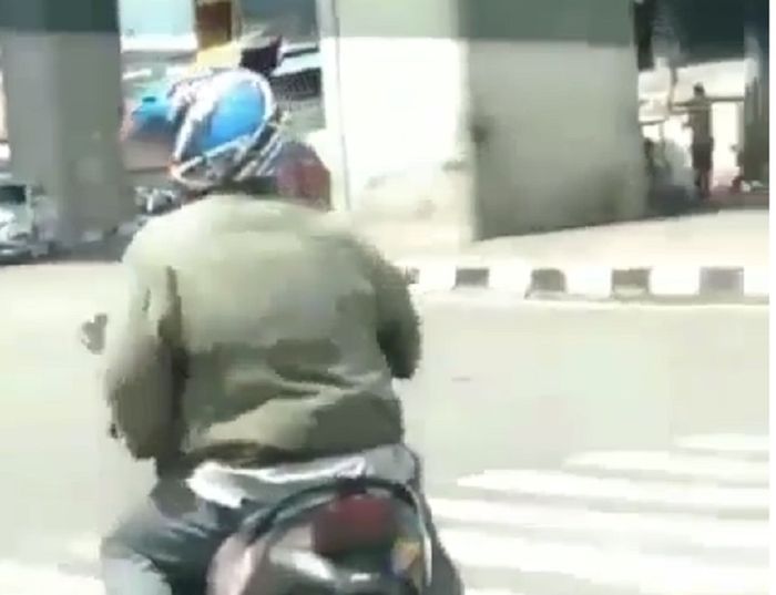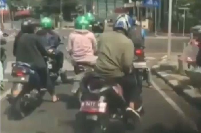 Pemotor tersebut terlihat sedang menunggu di sebuah lampu merah.