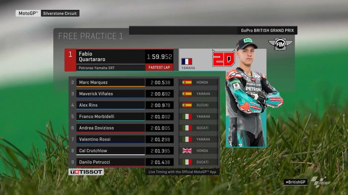 Berikut ini hasil lengkap latihan resmi 1 (FP1) MotoGP Inggris 2019;
