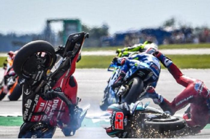 Pasalnya, Andrea Dovizioso tak bisa mengelak dari hantaman motor MotoGP Yamaha M1 milik Fabio Quartararo.
