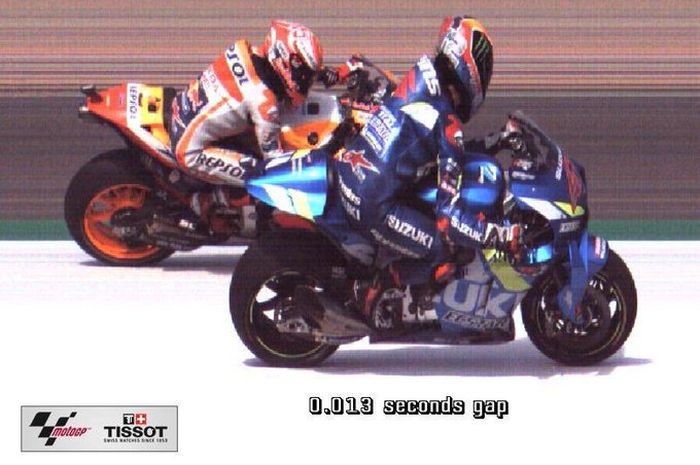 Alex Rins berhasil meraih podium tertinggi dengan keunggulan tipis dengan Marc Marquez, selisihnya 0,013 detik saja.