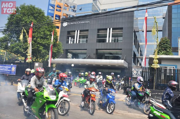 Gelaran Two Stroke Day 2019 berhasil mengasapi kota Jakarta dalam rolling thunder dari markas redaksi MOTOR Plus menuju gelaran Otobursa Tumplek Blek 2019 di Parkir Timur Gelora Bung Karno, Senayan, Jakarta Pusat.