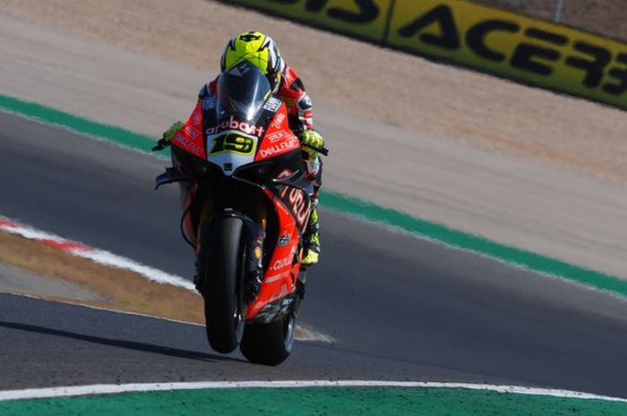 MOTOR Plus-online.com - Perjuangan pantang menyerah dipamerkan Alvaro Bautista di race 2 WSBK Portugal, Minggu (8/9/2019).
