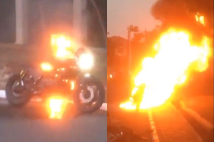 MOTOR Plus-online.com - Menolak ditilang saat razia, seorang pria nekat membakar motornya sendiri di depan polisi.
