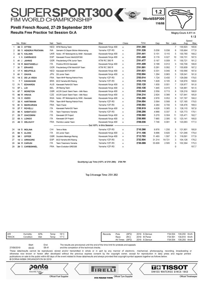 Berikut hasil lengkap latihan resmi WSSP300 Prancis Grup A;