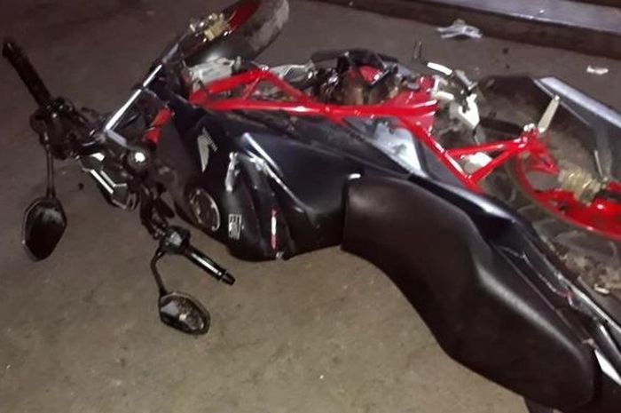 Karenanya kondisi motor Rido rusak berat. Tangki bensin hingga mesin motor serta bagian lainnya ringsek.