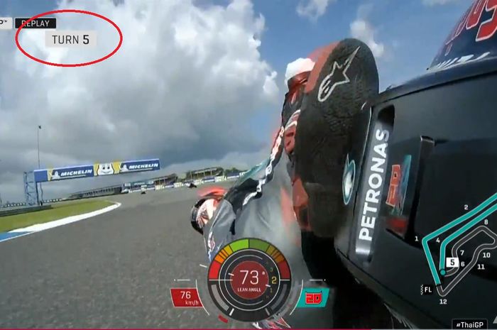 MOTOR Plus-online.com - Sesi kualifikasi MotoGP Thailand 2019 dipenuhi drama, salah satunya 3 pembalap top terjatuh di tempat yang sama, (5/10/2019).