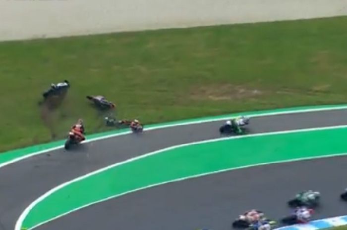 Saat balapan baru dimulai (lap ke-25) dua pembalap terjatuh.