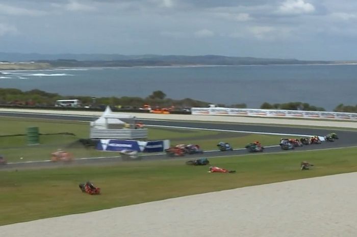 MOTOR Plus-Online.com – Nahas menimpa Fabio Quartararo dan Danilo Petrucci selepas start dan memasiki tikungan kedua di MotoGP Australia, Minggu (27/10/2019).